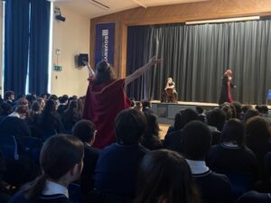 KS4 students had the opportunity to watch a production of Macbeth performed for them in the school hall. It was a wonderful experience, which allowed them to consolidate their study of the play, as well as enjoying the text as Shakespeare intended – aloud!