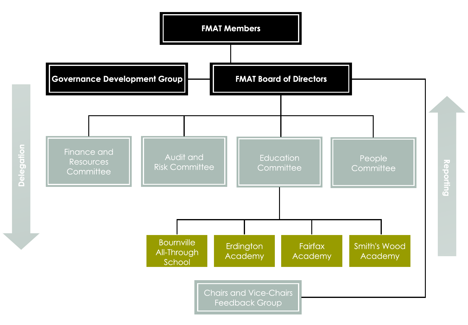 The diagram below sets out the governance structure of Fairfax Multi-Academy Trust (FMAT) and its committees.